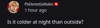 𝔊𝔬𝔩𝔡𝔢𝔫𝔯𝔢𝔱𝔩𝔦𝔢𝔟𝔥𝔞𝔟𝔢𝔯🇨🇭vor 18 StundenFace mcshootynot for me twin idk Europe weather ? 😭Bro that doesn‘t matter