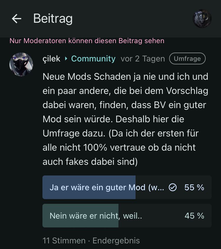 Apropos nett sein. Was hat eig diese Mod Umfrage da ergeben? Oder hat Ani keine gemacht?