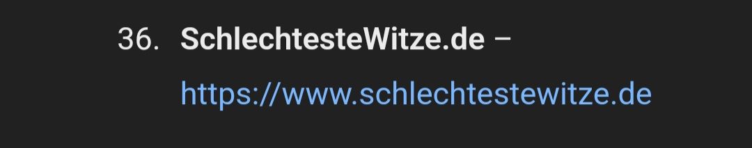 Hab mir mal 50 Witzeseiten generieren lassen. Da kamen meistens irgendwelche fiktiven Seiten. Das kam am nächsten, aber schlechtewitze.com war nicht dabei.