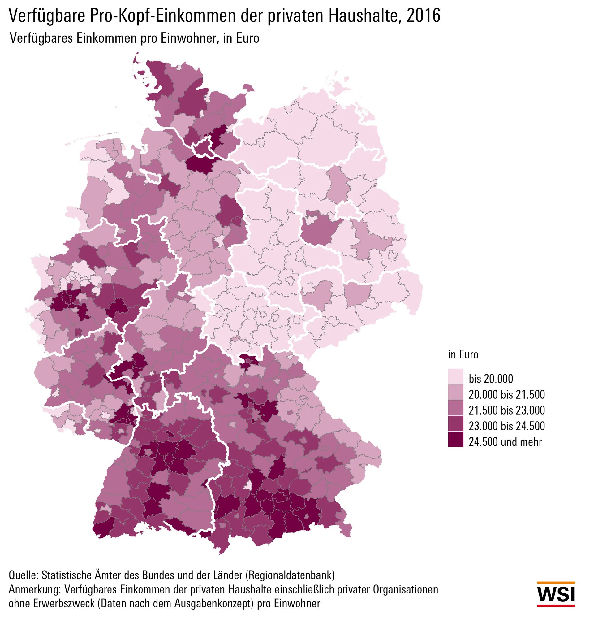 Nach Hitlers Tod teilte sich Deutschland in BRD und DDR und dann fiel ja die Mauer etc. Wenn man sich nun das Bild anschaut, sieht man die durchschnittlichen (!) Einkommen von Bundesländern in Deutschland. Man sieht, dass Leute im Osten durchschnittlich (!) weniger verdienen als im Rest von Deutschland. Doch man sieht ein Muster: Dort, wo früher die DDR war, geht es den Leuten heutzutage schlecht.
