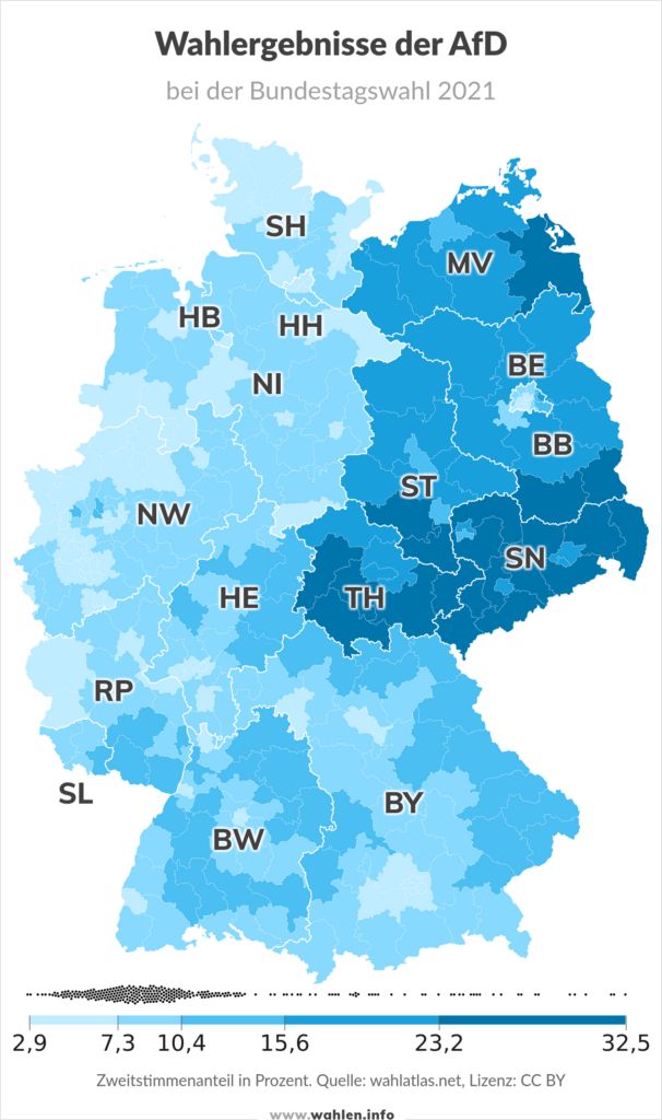Und nun schaut euch das Bild an zu den Bundestagswahlen der letzten Jahre an. Dort, wo es den Leuten schlecht geht, wählen sie Alternativen und vor allem - extrem! Wie man aber schon zu Hitlers Zeiten lernte, ist, dass diese Wahlen nicht unbedingt schlau sind.