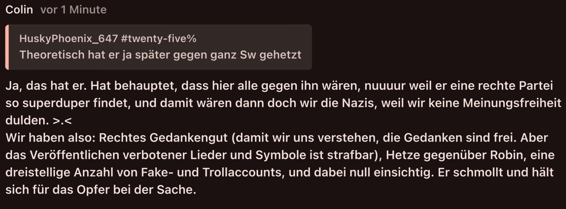 Er stellt mich als den Hauptverröter da, was allerdings nd stimmt