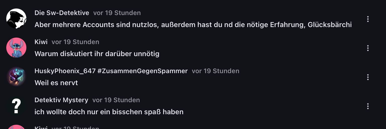 Der Sw-Detektive Account ist nd zum Spaß, sondern um Spammer und so aufzudecken