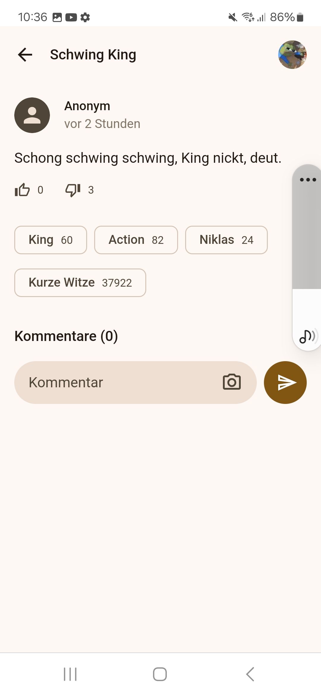 Diese Erklärungen unter den Witzen stören mich ein bisschen. Klar, sie erfüllen einen Zweck, aber dann wäre es z.B. cool, wenn man sie als Ersteller bearbeiten könnte. Denn viele, die ich bisher gelesen habe, waren unvollständig.