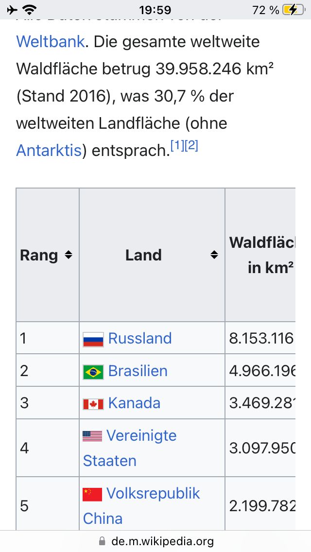 Du hast den Fakt falsch verstanden. Nd die größte Waldfläche. Der viertgrößte WaldANTEIL heißt, es ist ein Staat, in welchem der Wald einen Großteil der Fläche ausmacht. Und außerdem ist Google und damit auch Wikipedia verboten :)