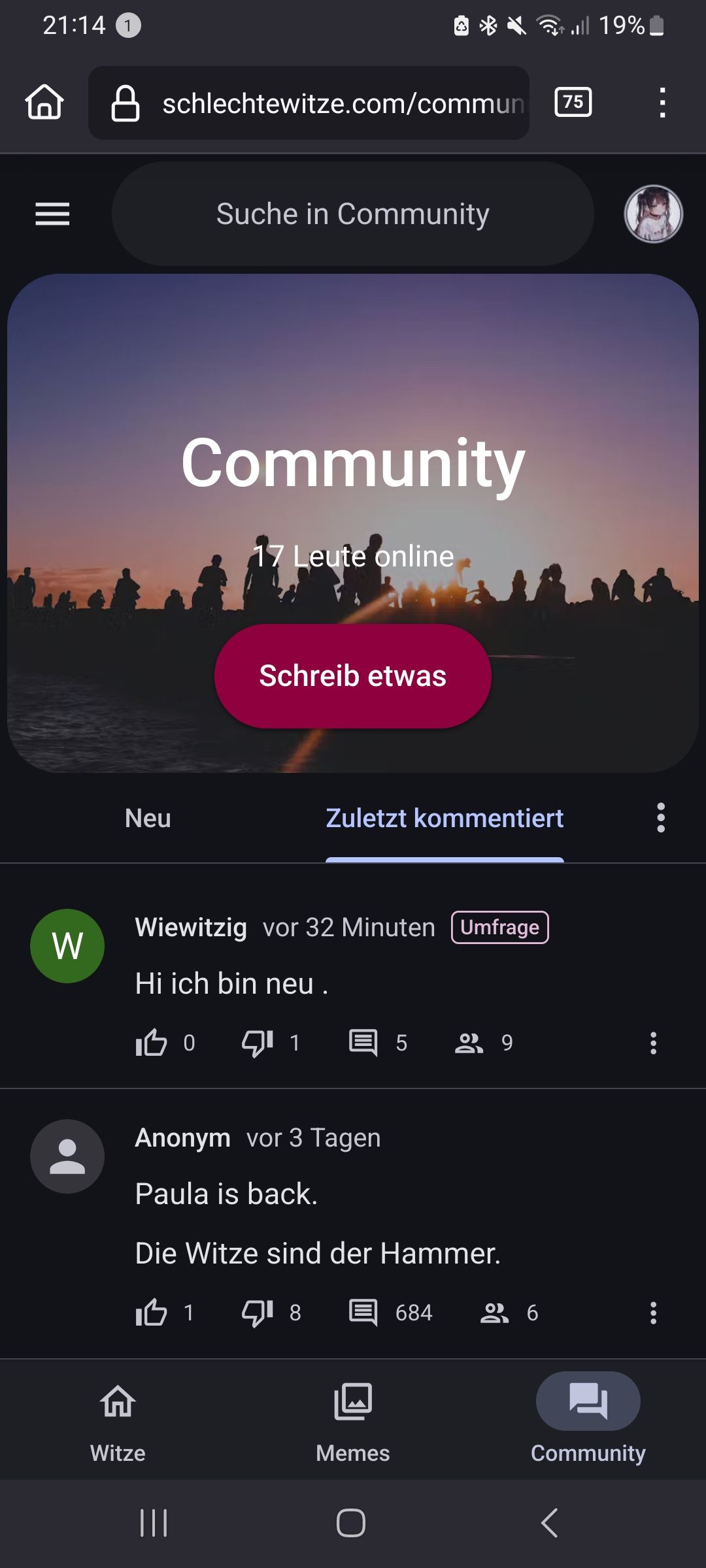 Wiewitzigvor 8 MonatenUmfrageHi ich bin neu .Kennt mich schon.18 %Kennt mich nicht.82 %17 Stimmen · Endergebnis
