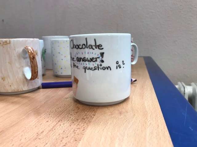 Ich bin in einem Ferienprogramm und wir haben heute Tassen bemalt