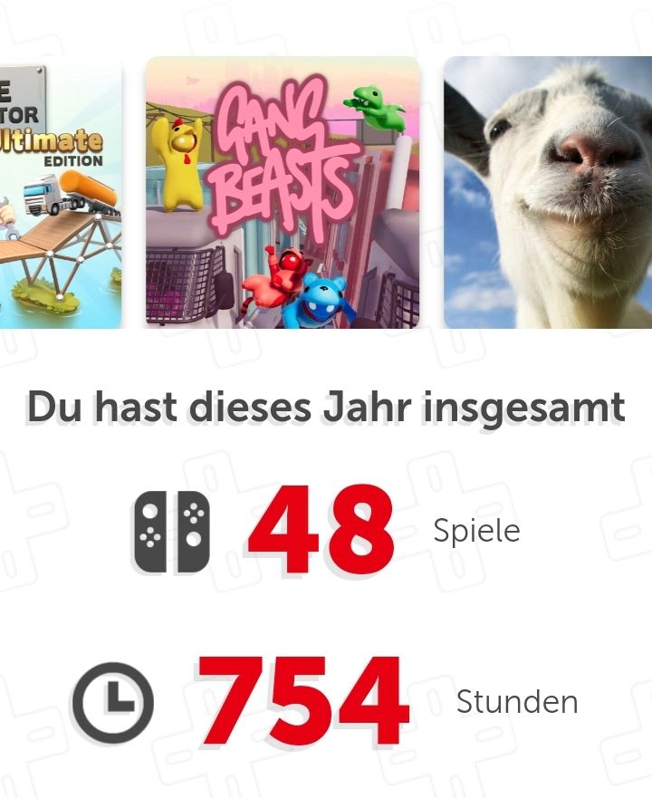 Der Nintendo Switch Jahresrückblick ist da, wenn ihr eine Switch habt, und ihr den Jahresrückblick habt, dann schickt hier mal rein, was ihr dieses Jahr gespielt/ wie lange ihr gespielt habt