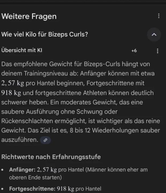 Colinvor 5 Monaten918 kg, soso... Und "fortgeschrittene Athleten" können sogar noch schwerer heben? Möchte glaub nicht wissen, wie schwer