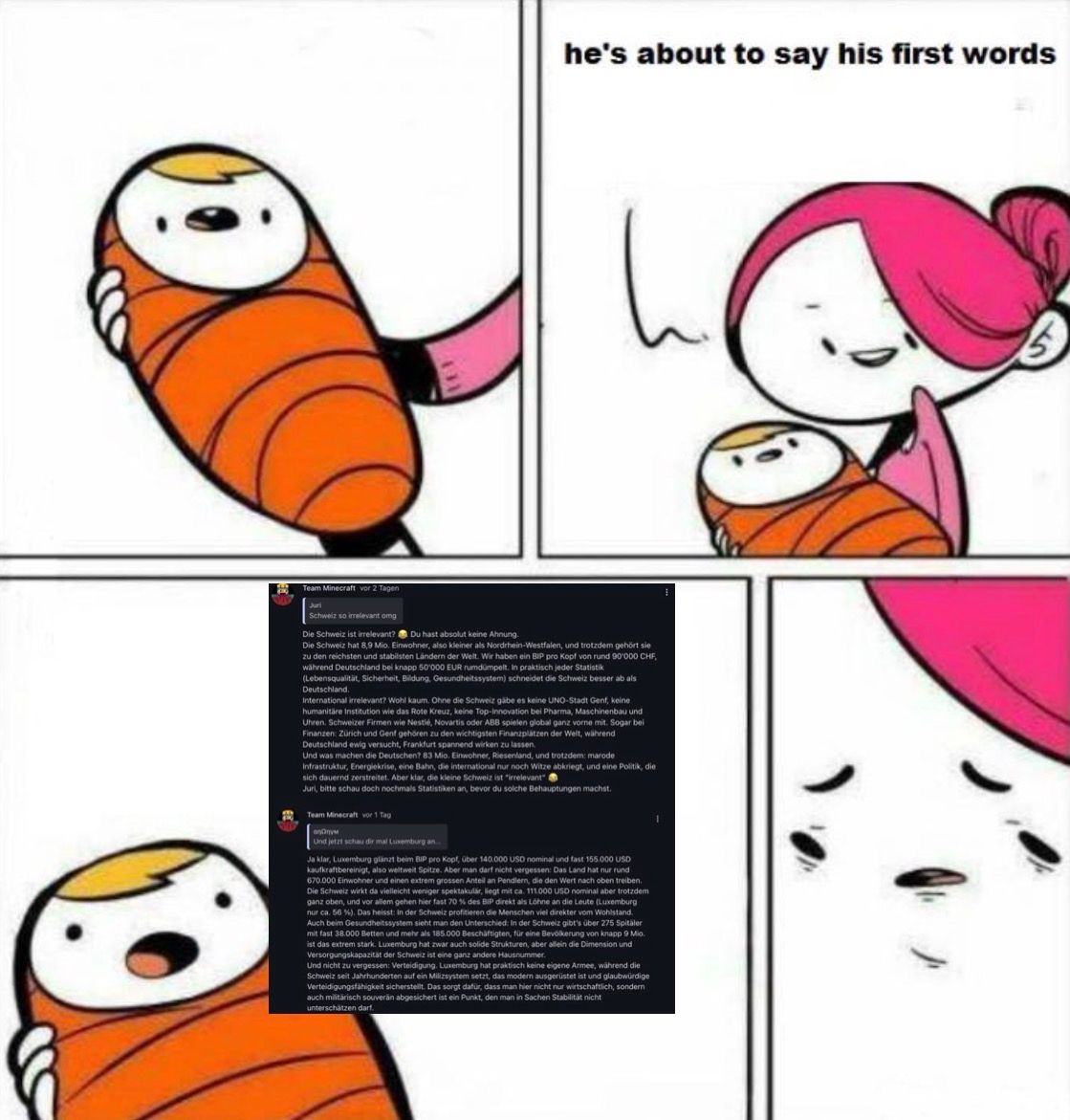 JaBe würde sich freuen, dass ich ein Meme über ihn gemacht habe und du bezeichnest das als Angriff auf irgendne Eidgenossenschaft :(