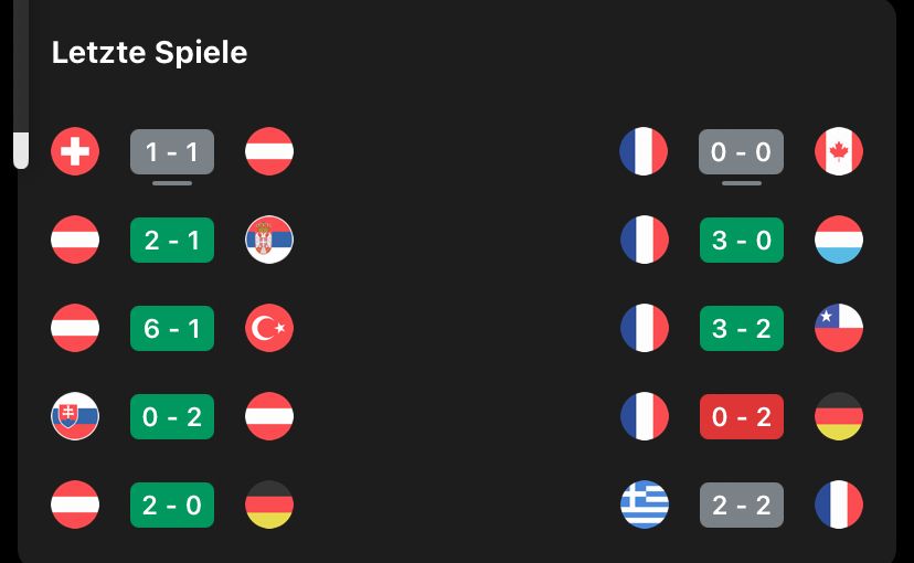 Österreich hat 2:0 gegen Deutschland gewonnen, aber Frankreich hat verloren