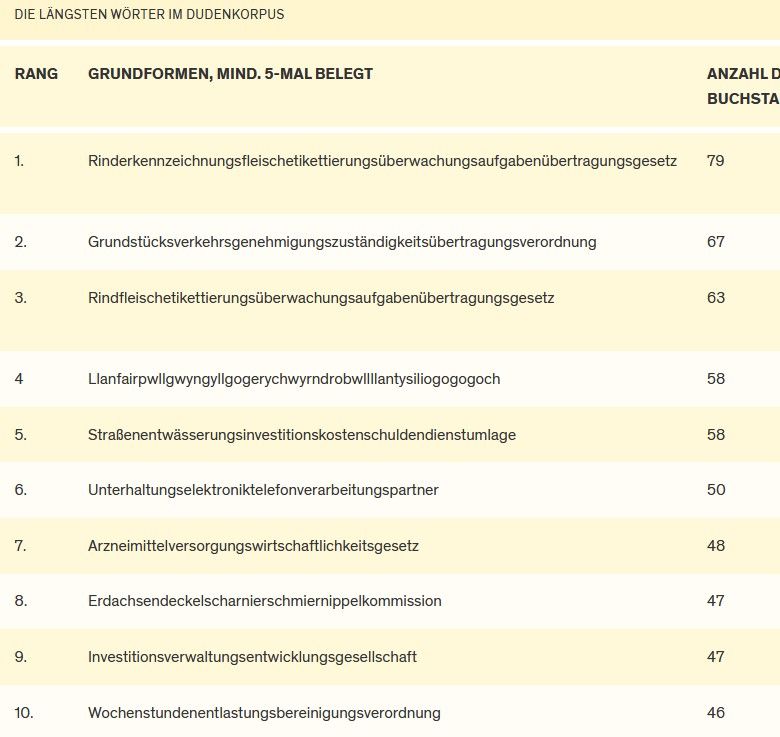 "Auf Platz 4 liegt ein echter Zungenbrecher: Llanfairpwllgwyngyllgogerychwyrndrobwllllantysiliogogogoch ist eine Gemeinde im Süden der Insel Anglesey im Nordwesten von Wales (58 Buchstaben)."