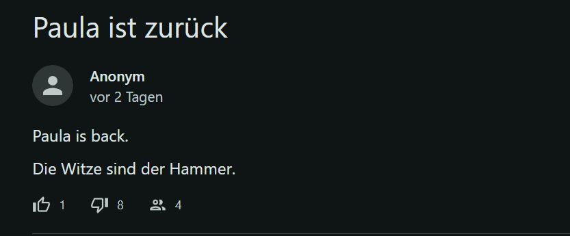 Schon wieder ein Witz gelöscht. Ich merke all