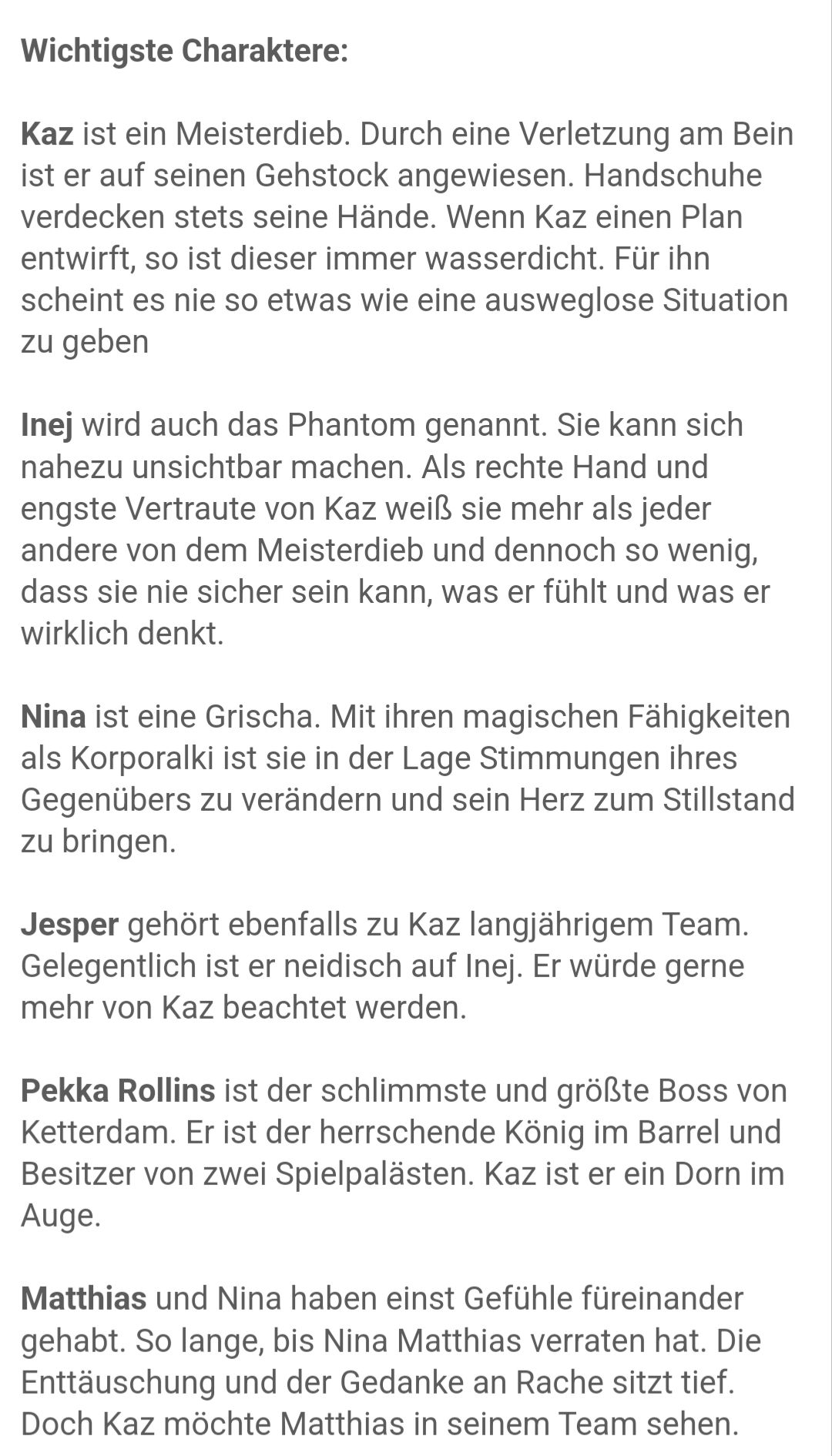 Hast du zufälligerweise das "Lied der Krähen" von Leigh Bardugo gelesen? Ein Charakter daraus erinnert mich extrem, wirklich extrem, an dich - und seitdem fange ich auch an, andere Charaktere mit Usern zu verbinden, und es passt erschreckend gut