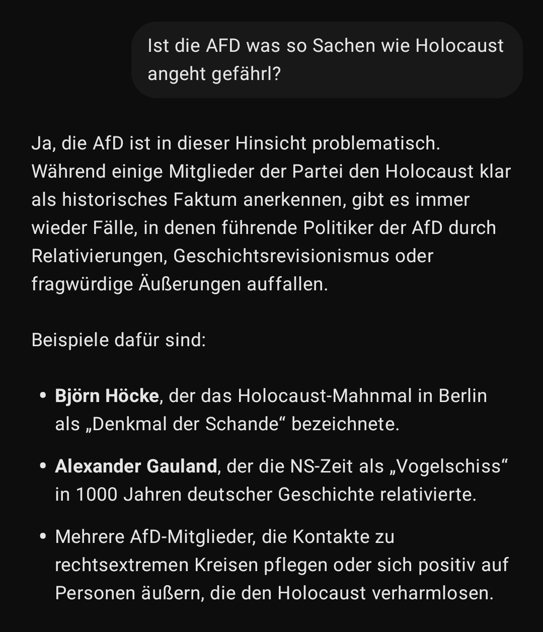 Aber die AFD ist nicht schuld am holocaust dafür an anderen dingen