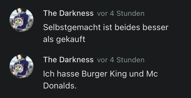 Ich find z.B von McDonald’s die Burger nicht so gut, dafür bei Memo zum Beispiel sehr sehr lecker