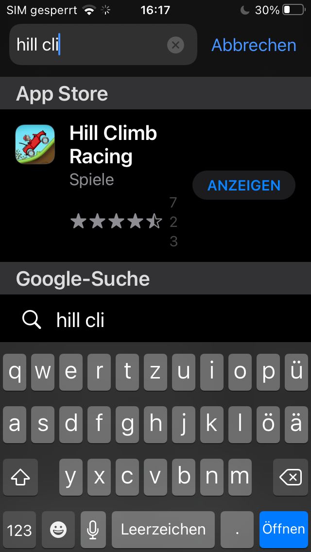 Im App Store unter Hill climb