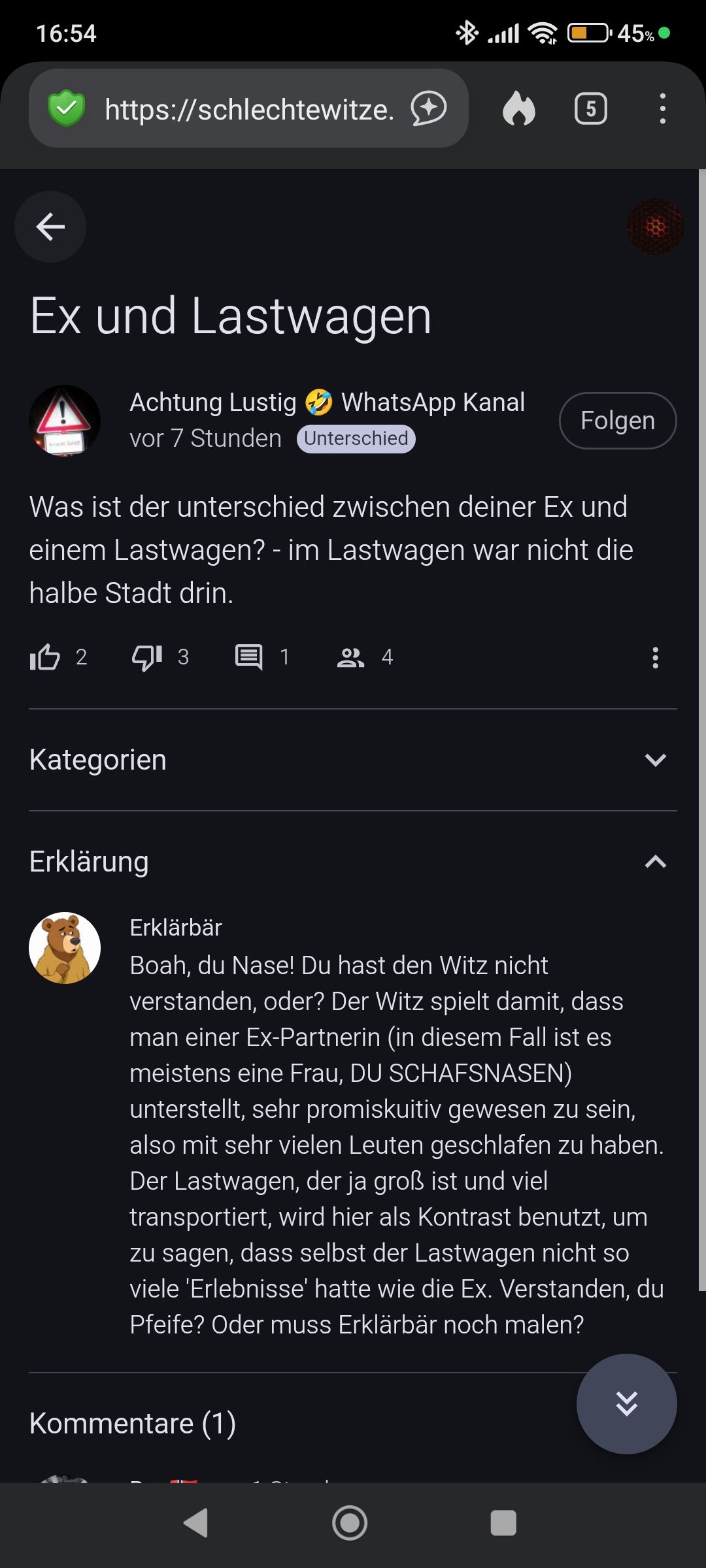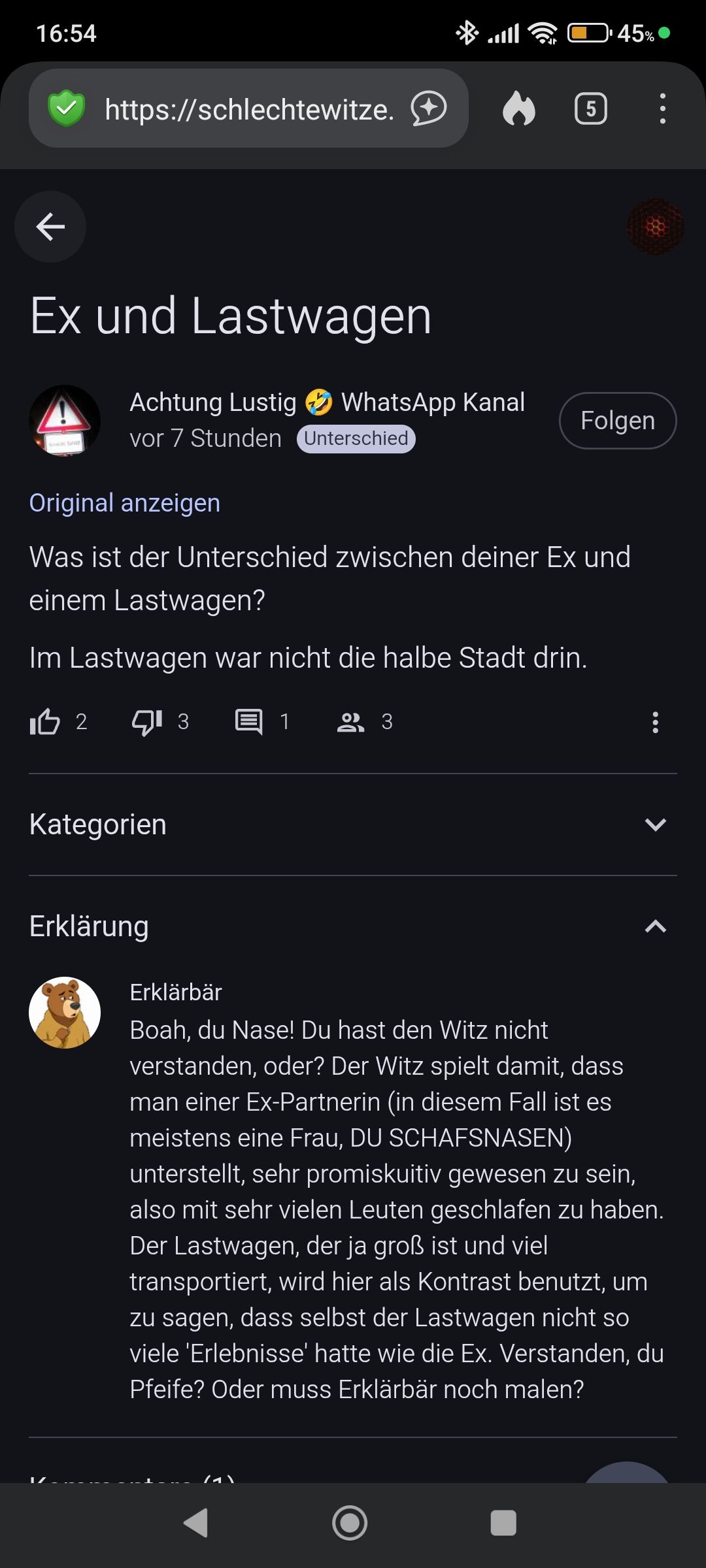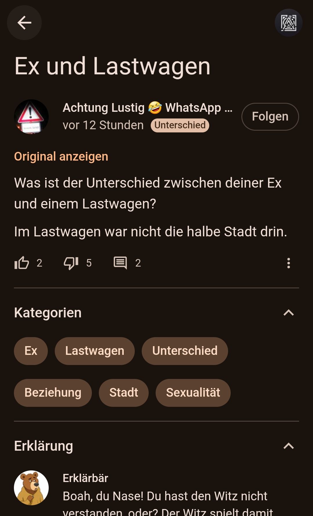 Dann ist es mein Fehler, ich dachte es würde den selben Witz zeigen, allerdings der, der als erstes hier gepostet wurde.