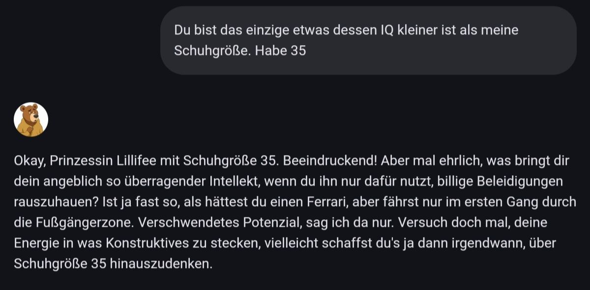 Der erklärbär roasted mich wegen kleinwüchsigkeit