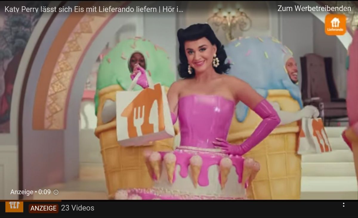 Überschrift:"katy perry lässt sich Eis mit Lieferando liefern"