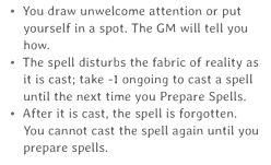 Man kann einen starken magischen Effekt hervorufen, welcher jedoch auch einen Nachteil mitbringt. Z.B. fackelst du ausversehen das Haus ab und zündest nicht nur die Kerze an. Oder... Du teleportierst dich zwar weg, aber du hast absolut keine Ahnung wo du bist.