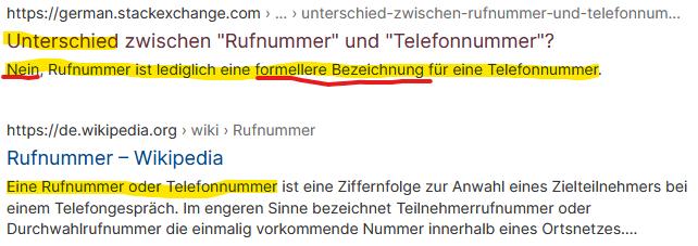 Nein Rufnummer is was anderes als Telefonnummer