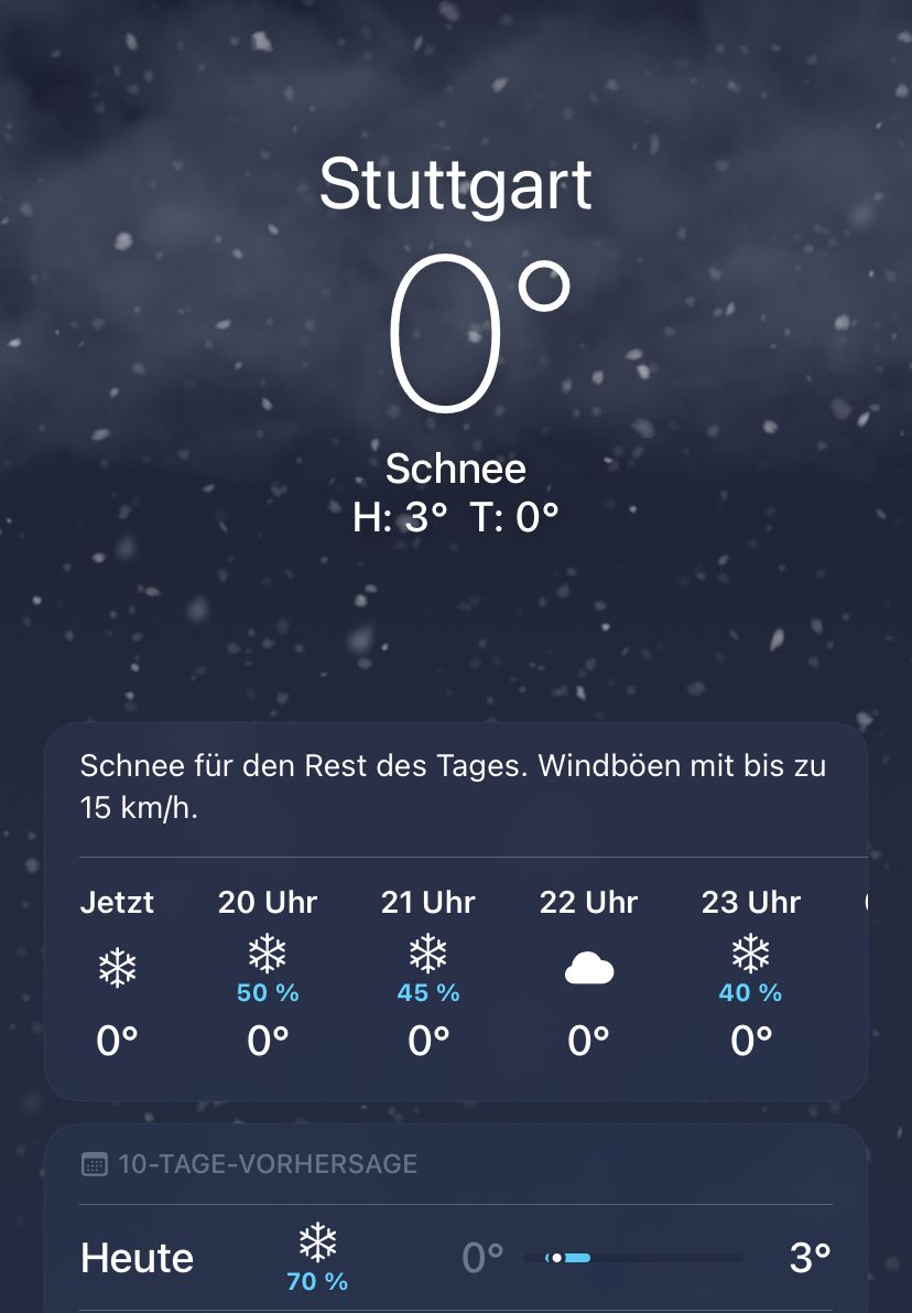 Bei uns war Schnee angekündigt. Naja noch ist er nicht da.