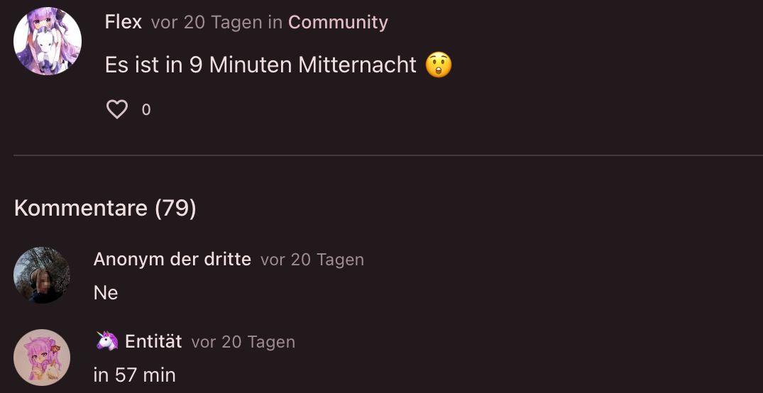 Ja das ding ist ich wollte von 11:45 bis 12:45 Uhr tanzen deshalb habe ich Ani gefragt😅 Nik hast du am Abend keine Zeit oder so zum chatten?