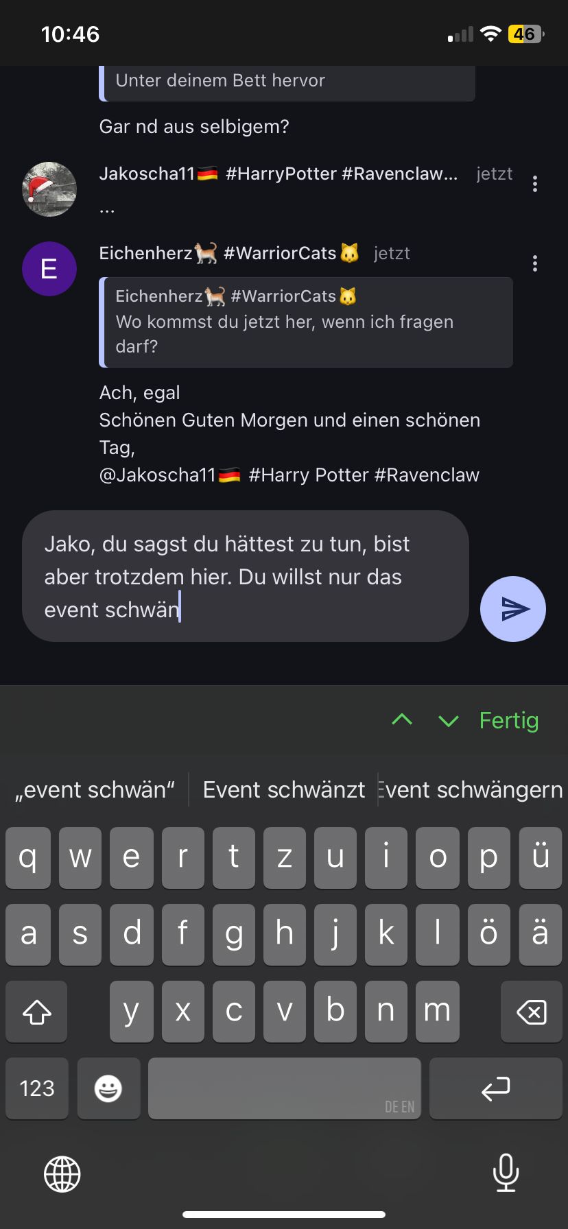 Jako, du sagst du hättest zu tun, bist aber trotzdem hier. Du willst nur das event schwänzen😢