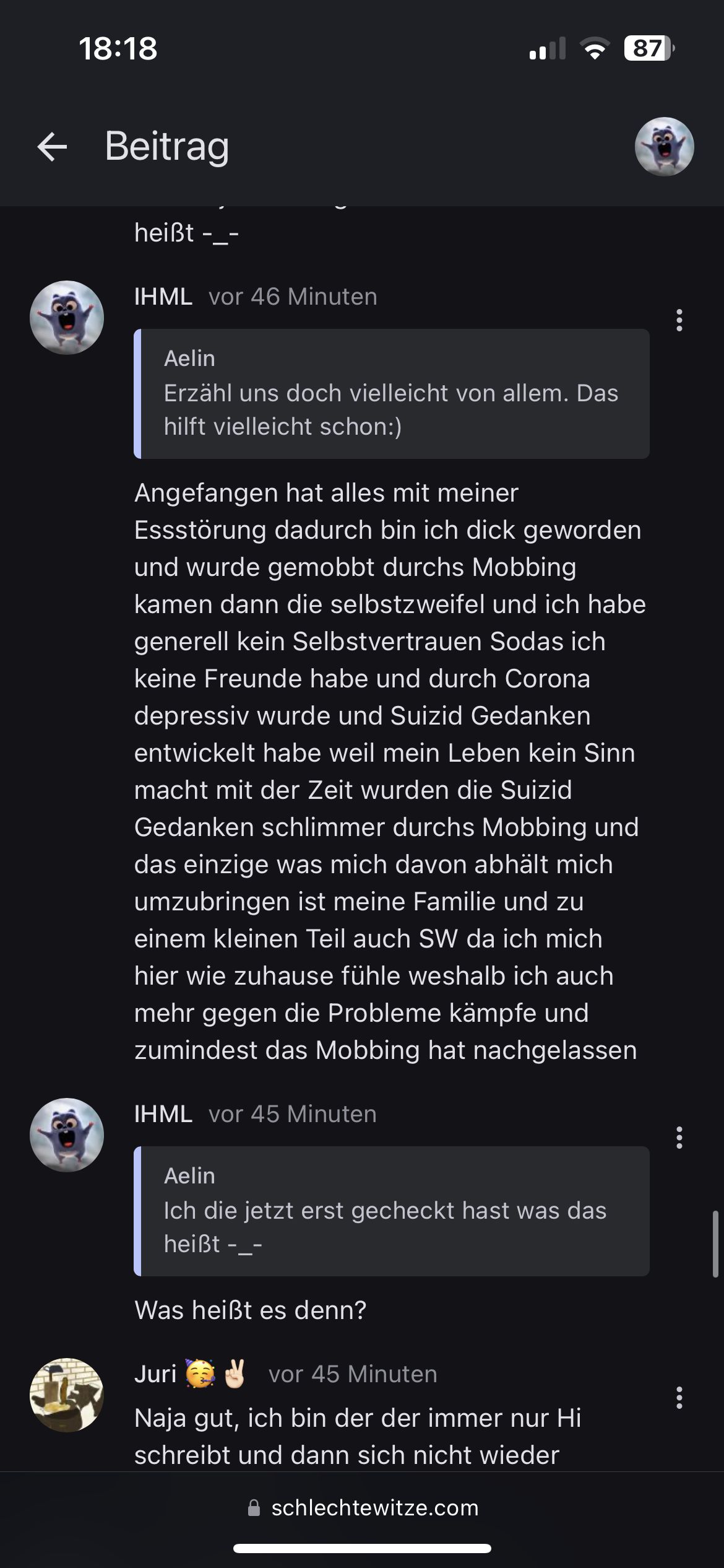 Versuch am besten mehr über die einzelnen Probleme wie Depression niedriges selbst vertrauen usw herauszufinden