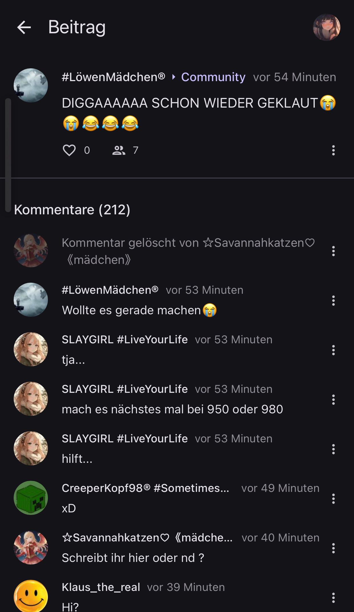 Btw wenn man im Beitrag drinnen ist, obwohl der gelöscht wurde, dann kann man da immernoch ganz normal weiterchatten