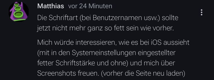 Die Schriftart (bei Benutzernamen usw.) sollte jetzt nicht mehr ganz so fett sein wie vorher.