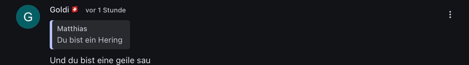 Du bist ein mies unlustiger schizophrener nu**en sohn der sich mit ki tieren unterhaltet. Ich kann dir gerne eine super tolle schaufel inkl. grab mit tollen emojis kaufen damit du dich ganz toll vergraben kannst, dann hat jeder einen schönen tag den du immer wünscht. Hoffe dir hat meine Reflektion gefallen :D