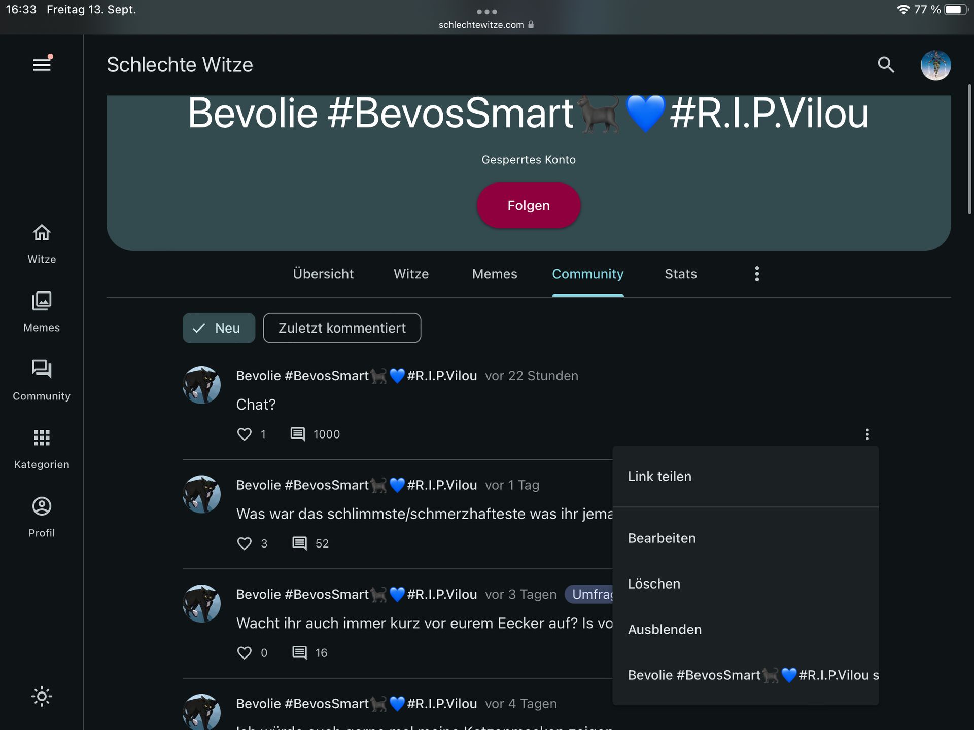 unter ihrem Profil steht Gesperrtes Konto