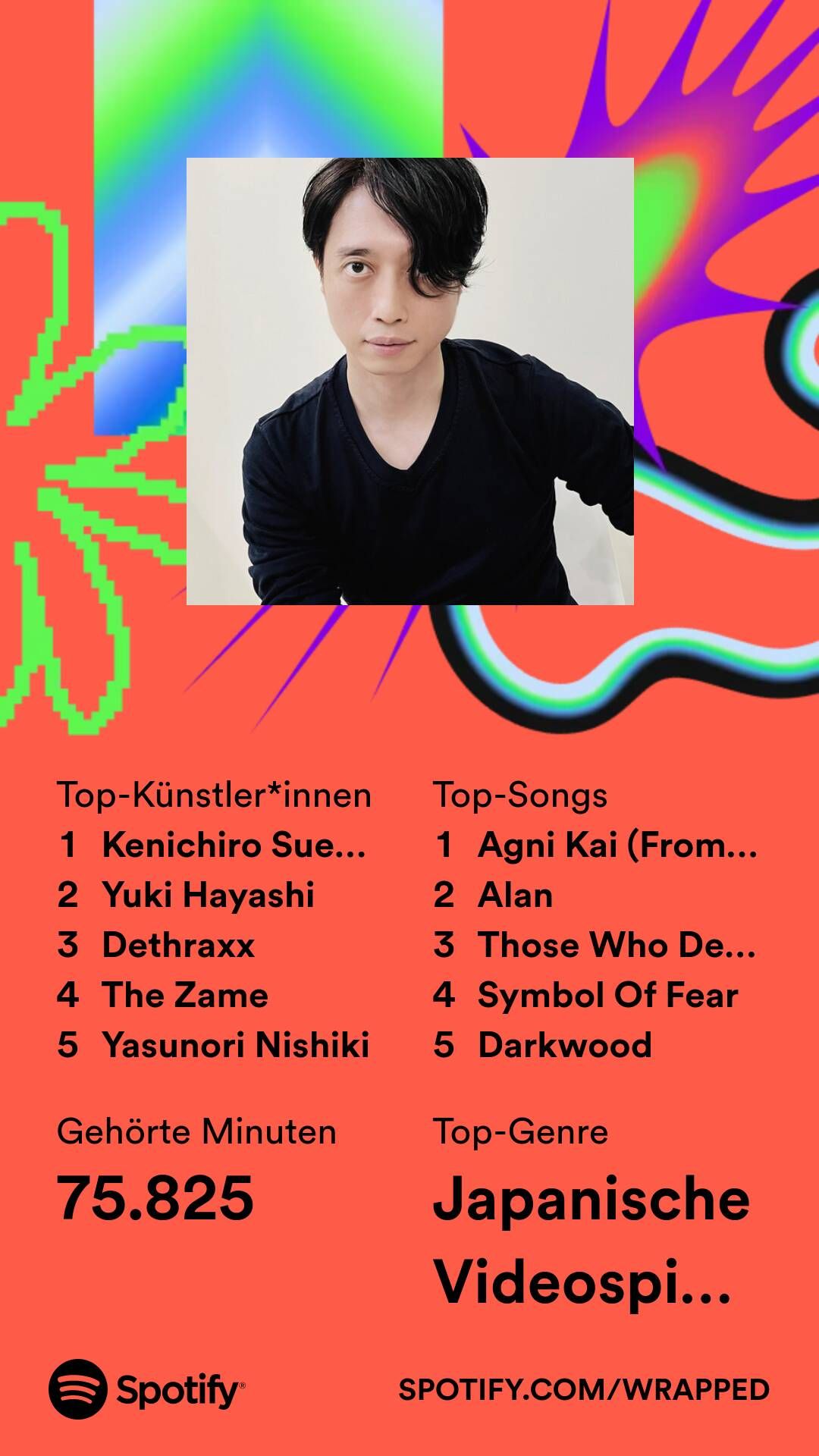 - Top 1: Kenichiro Suehiro, 3.508 Minuten gehört (Top 0,1% der User)