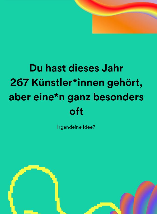 Was sagt euer Spotify Jahresrückblixk? Ik ~Me hat schon nen Beitrag gemacht aber keiner hat geantwortet hahaha achso und btw sry für den 4. Beitrag heute, ich lasse es jz :))