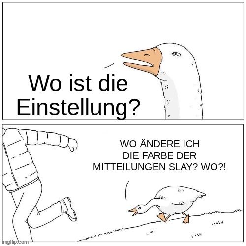 Jako, du bist ein Trottel. Die Farbe der Symbole im Menü (sieht man in deinem Screen) wechselt, aber das kleine rote Benachrichtigungs-Ding ist IMMER Rot. Das ist so, damit es dir ins Gesicht schreit, wie wichtig die Nachricht ist, du Depp.