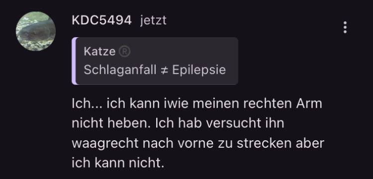 Ja, aber es... es ging nicht. Hab ich jetzt einen Schlaganfall? Oder ist das ganz normal?