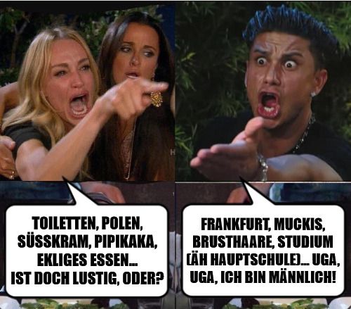 Frage 1: Selbstbewusst und gepflegt auftreten Frage 2: Warendorf, das steckt doch bereits im Namen Frage 3: Frankenstein (auch wenn ich bezweifele, dass du diese Antwort raffst, Bobby) Frage 4: Maximal in deiner Fantasie... das mit dem 1 vs 1 ist Maulheldentum. Ist wie mit Sex oder Geld: Nur wer es nicht hat, quatscht ständig darüber. Frage 5: Keins davon, dafür ist mir meine Zeit wirklich zu schade Frage 6: Eine Ingenieurswissenschaft. Aber welche, verrate ich nicht!