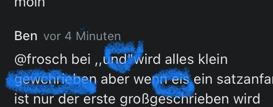 @frosch bei ,,und"wird alles klein gewchrieben aber wenn eis ein satzanfang ist nur der erste großgeschrieben wird