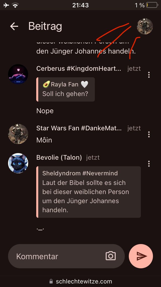 Siehst du, Rayla? Tatsächliche Irrelevanz ist anders. Wenn du sagst, dass du gehst, würden alle „Bye“ schreiben. Hier bei mir nicht. Das ist ein Unterschied: deswegen kannst du nicht sagen, dass es irrelevant ist ob du gehst.
