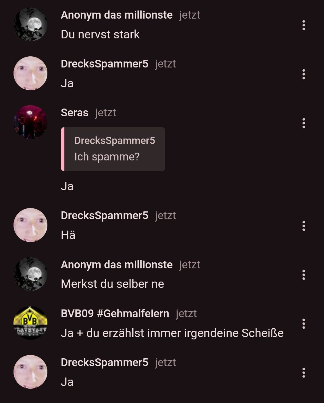 LIES DEIN NAMEN, DIESEN CHAT UND FRAG NOCHMAL WAS IST SPAM😭😭😭😭😭😭 JUNGEEEE WIE NERVIG WILLST DU SEIN?! DU: JAAAA 1000000000%