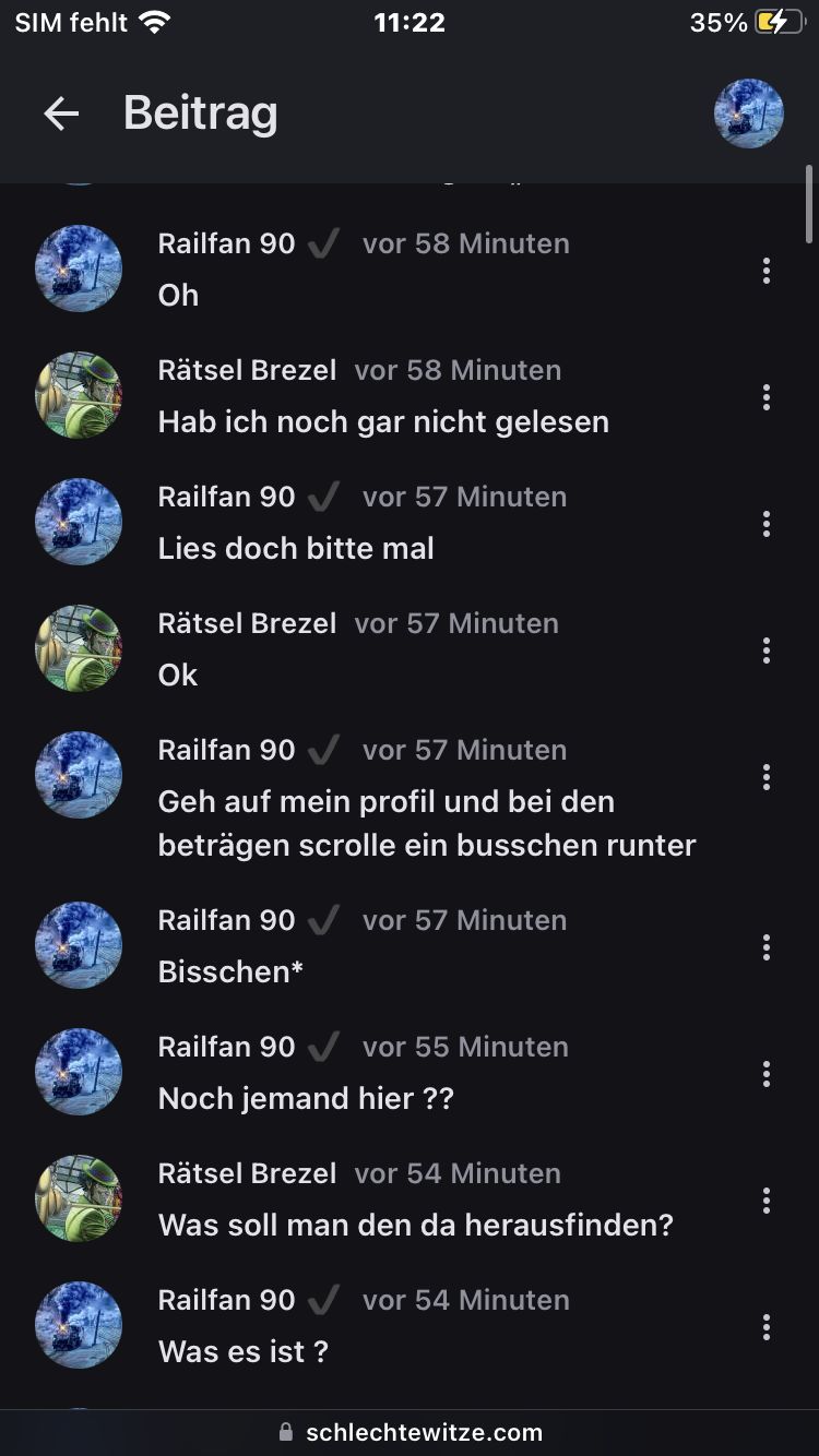 Darts4evervor 2 JahrenAnonymDein letzter Witz is gut! 😂Lade halt mehr aufm Hauptaccount hoch, der hier ist eig nur zum chatten😅