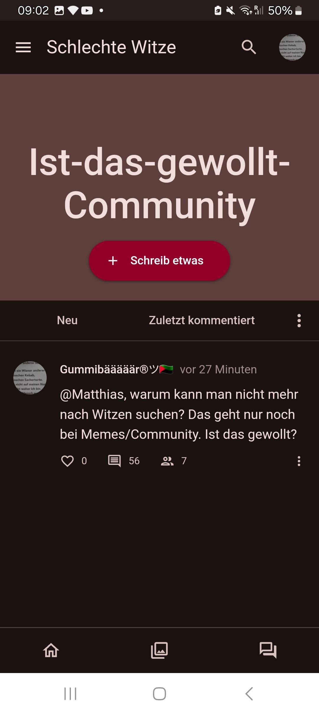 Anonymvor 1 JahrIch kann halt oben bei der Startseite und in der Community bei der Lupe immer suchen - sowohl nach Nutzern als auch nach Witze(bereiche)