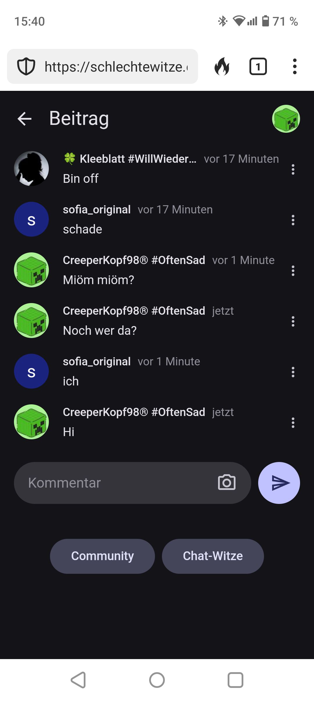 Ich mache keine witze/memes bin eigentlich nur zum chatten hier und anscheinend um unabsichtlich memes zu erstellen bzw die Idee dafür