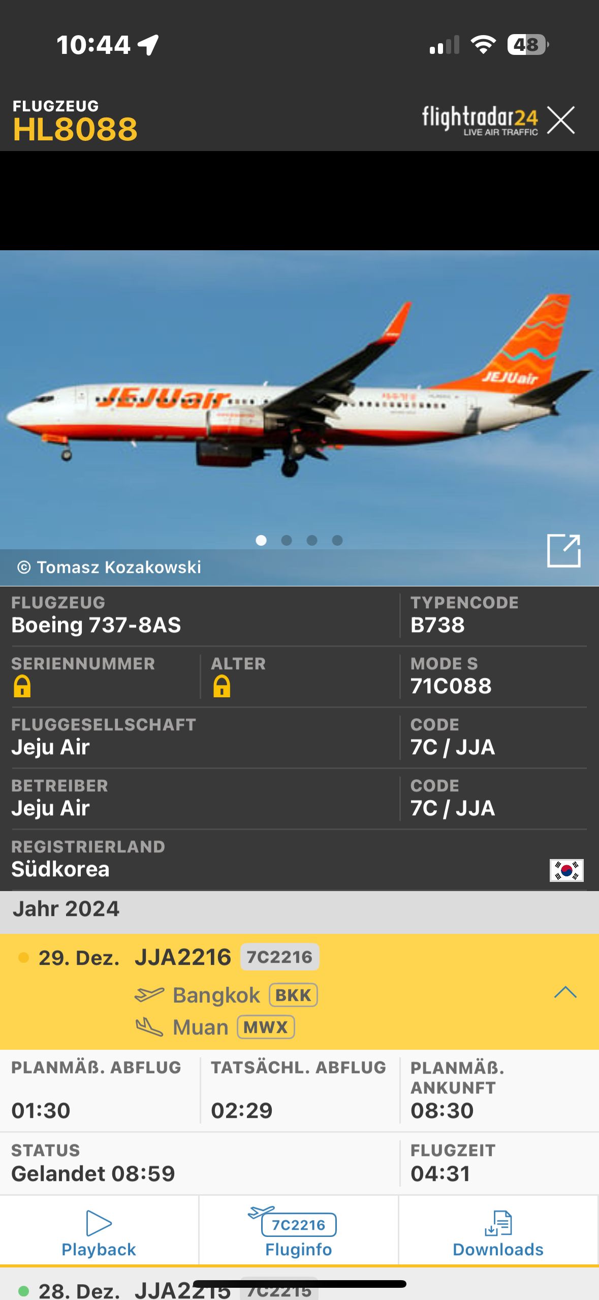 Eine 737-800 HL8088 hat in Muan ohne Fahrwerk die landebahn überschossen und ging in einem feuerball auf. 179 der 181 starben