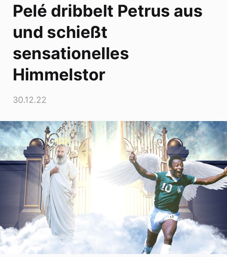 Ich kenne Pelé auch nicht, deshalb fühl ich da auch nicht stark mit, aber wenn ich das darauf übertrage, was wäre wenn eine berühmte Person die ich kenne stirbt, kann ich das schon nachempfinden wie sich die Fans von Pelé fühlen müssen.