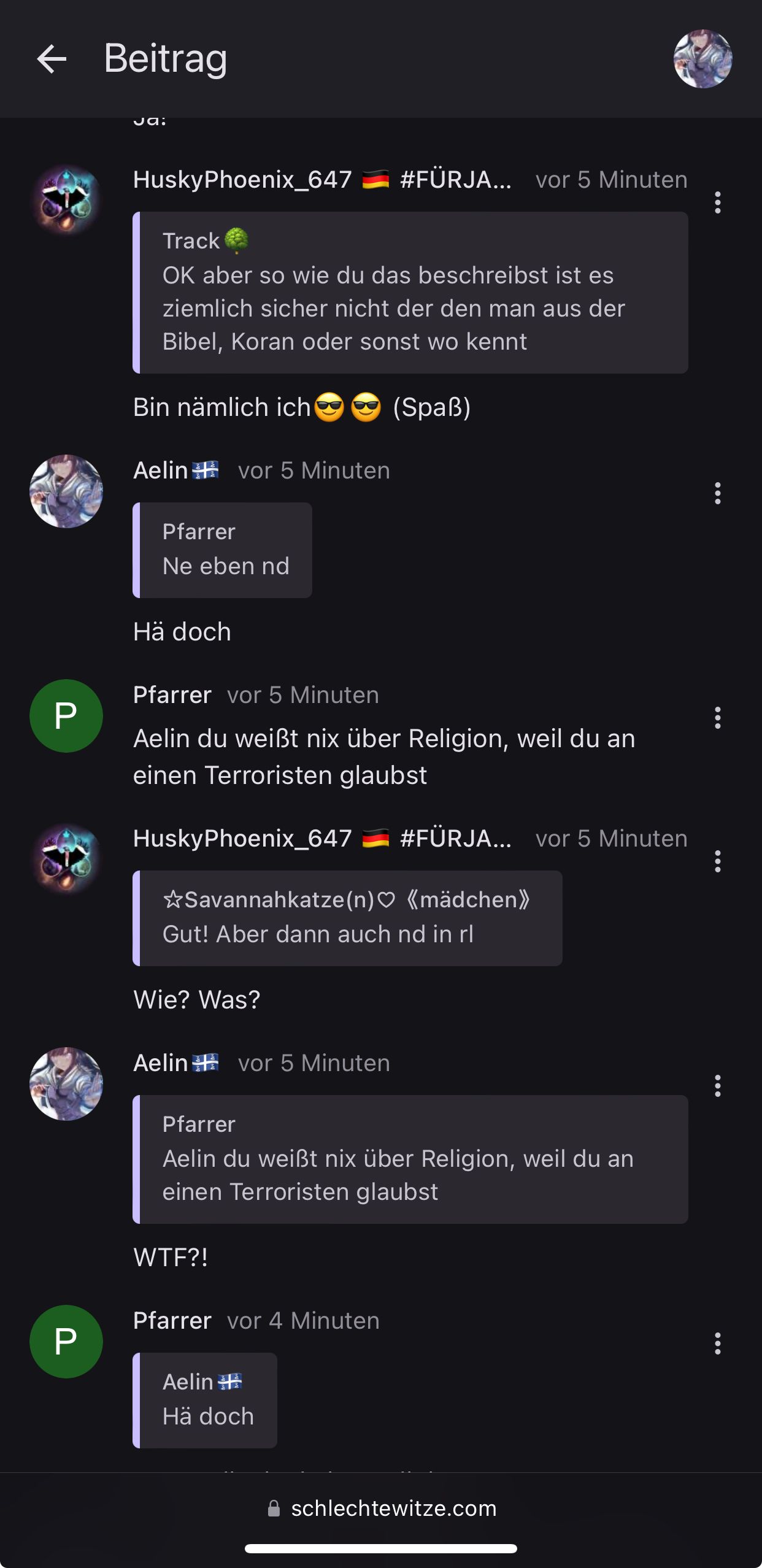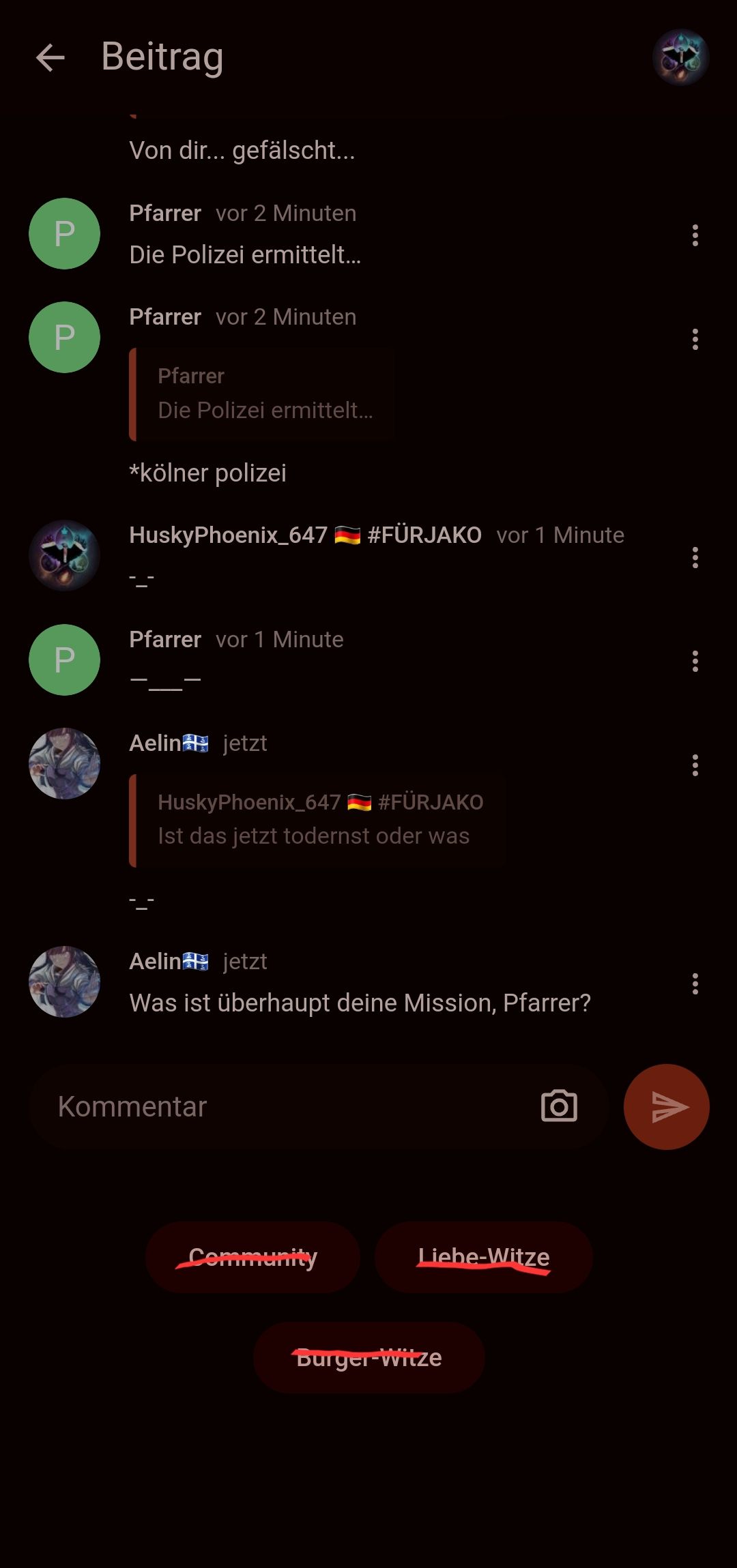 Pfarrer, kannst du mal aufhören, Voldrun Norixius's Kommentare zu ignorieren oder hast du Angst, dass er recht hat?