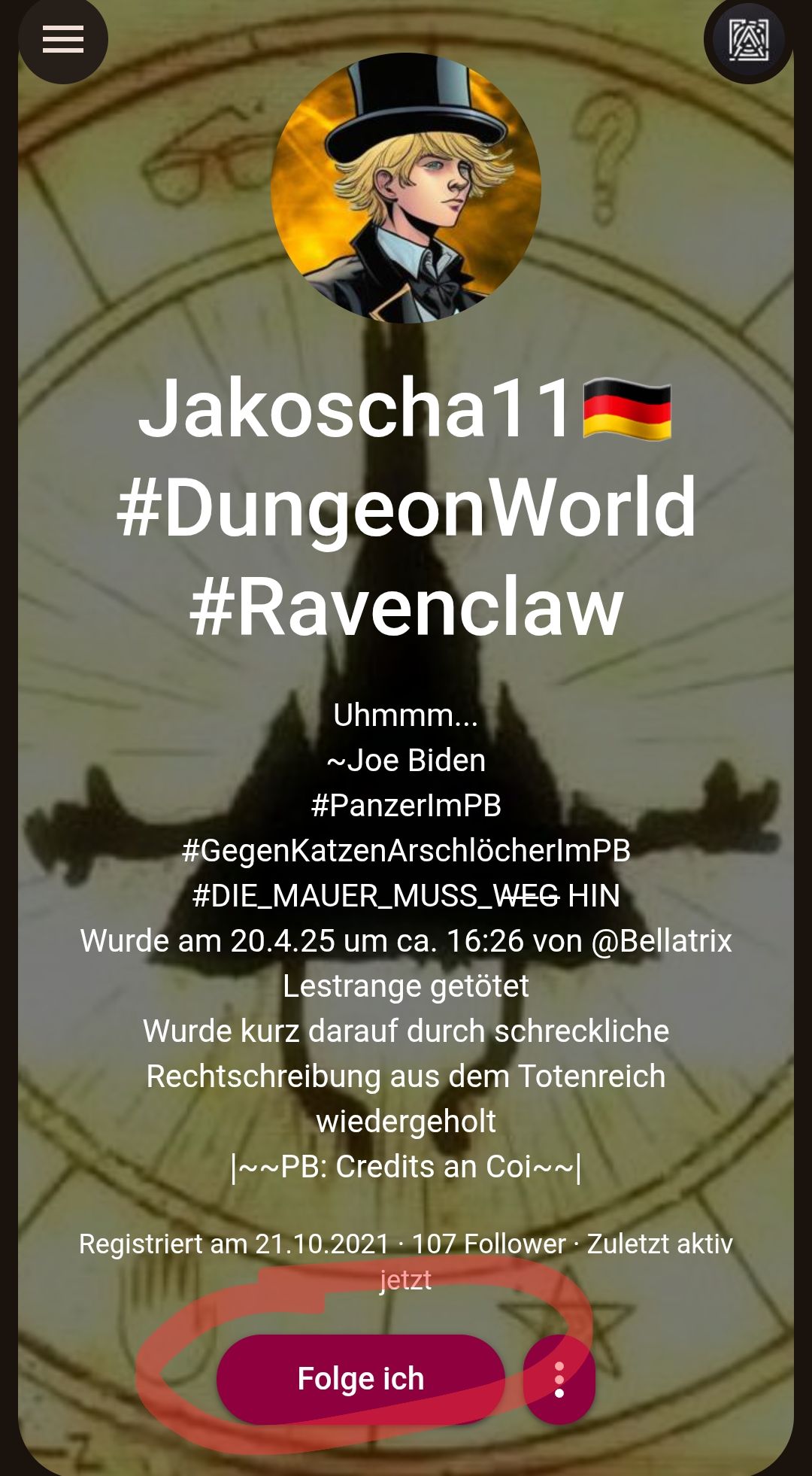 Jakoscha11🇩🇪 #DungeonWorld #Ravenclaw ich würde zittern..