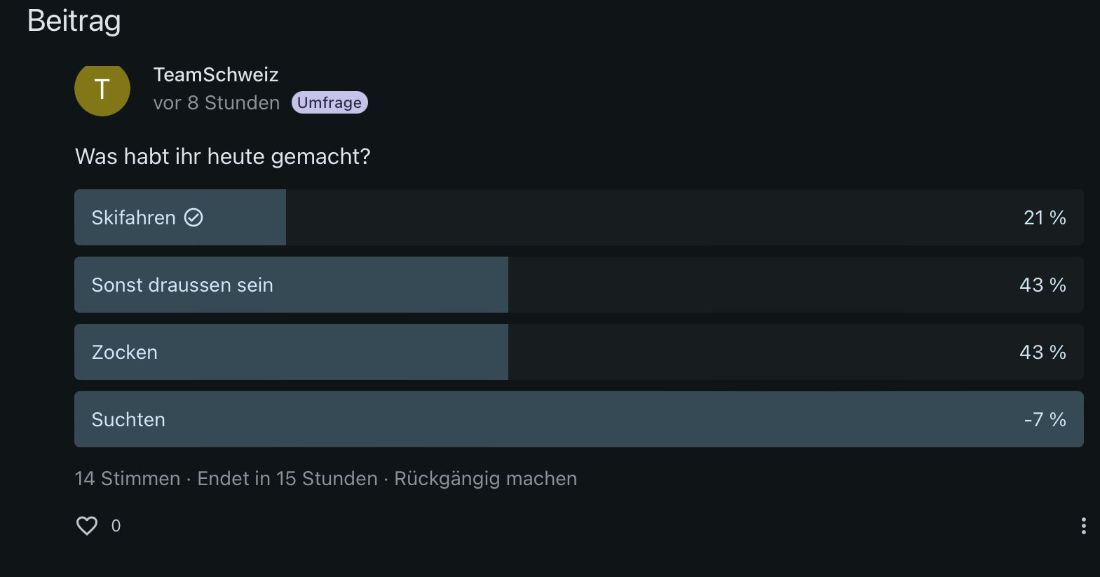 Hallo bei einer Umfrage wurden bei mir minuswerte angezeigt. Weiß irgendwer wiso das so ist oder ist es bei euch auch so? (Bild und link in den Kommentaren)